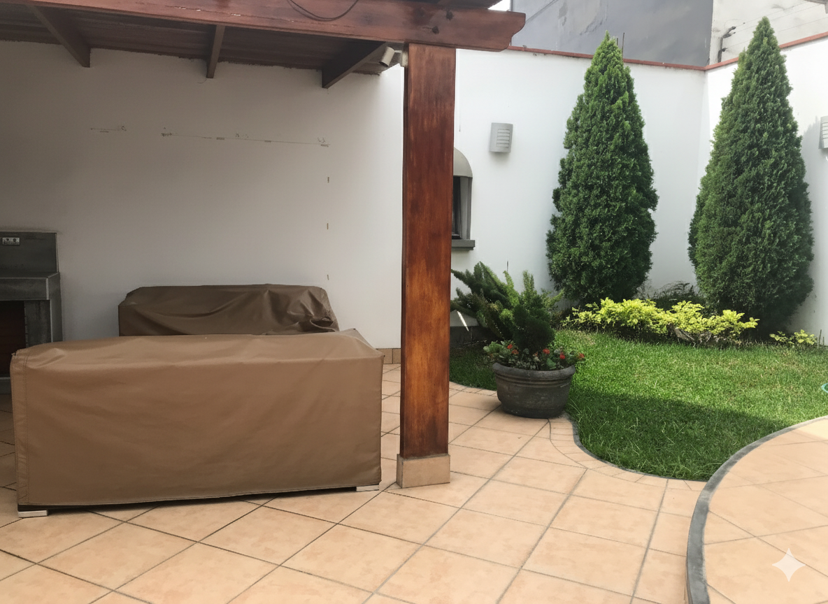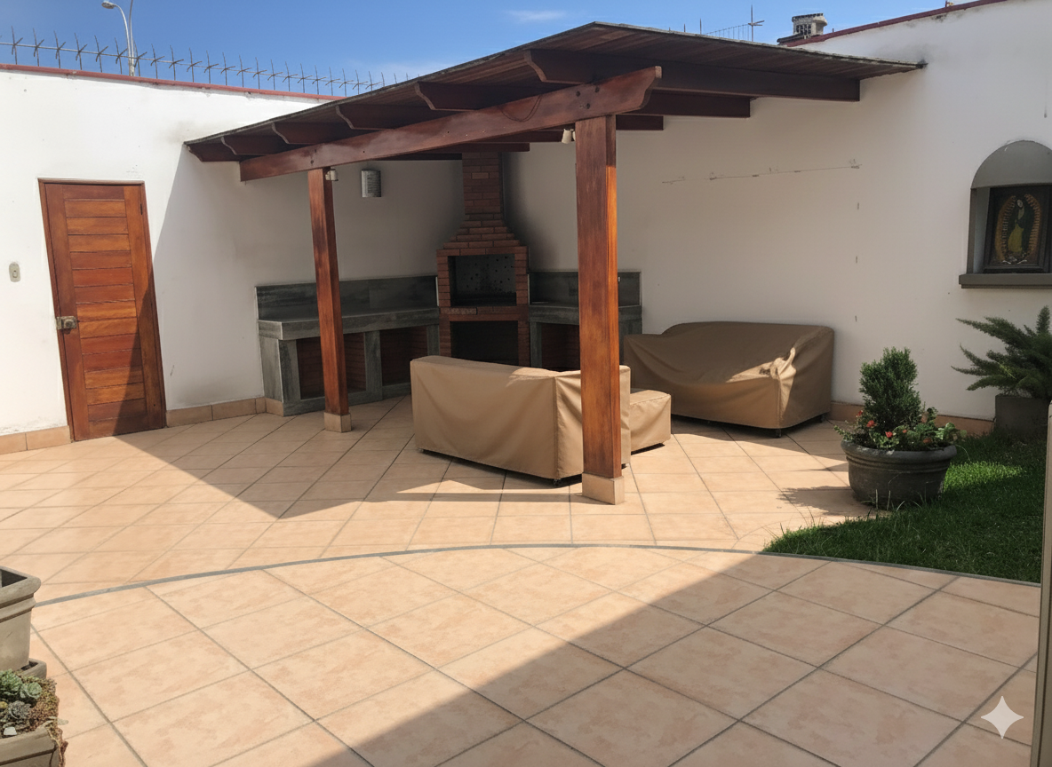 Terraza con zona de parrilla y jardincito (acceso por puerta falsa)