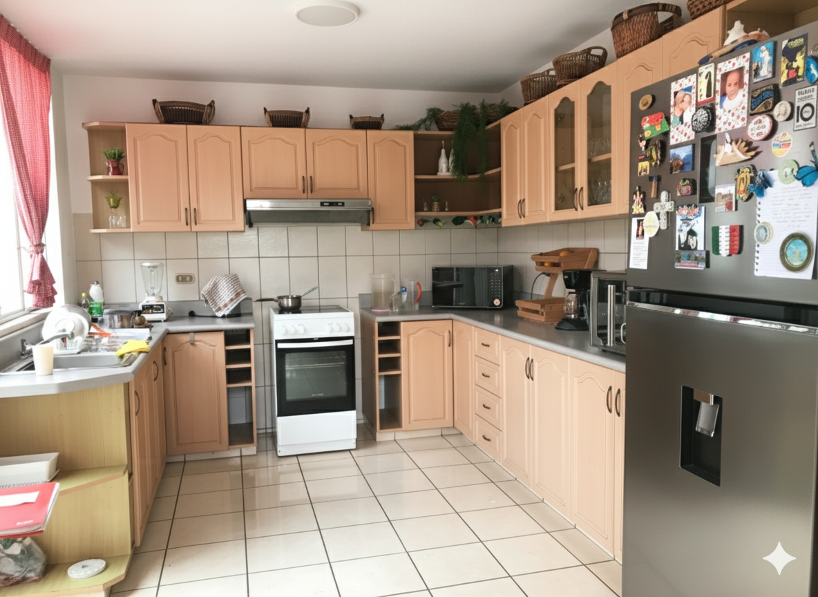 Cocina con reposteros altos y bajos