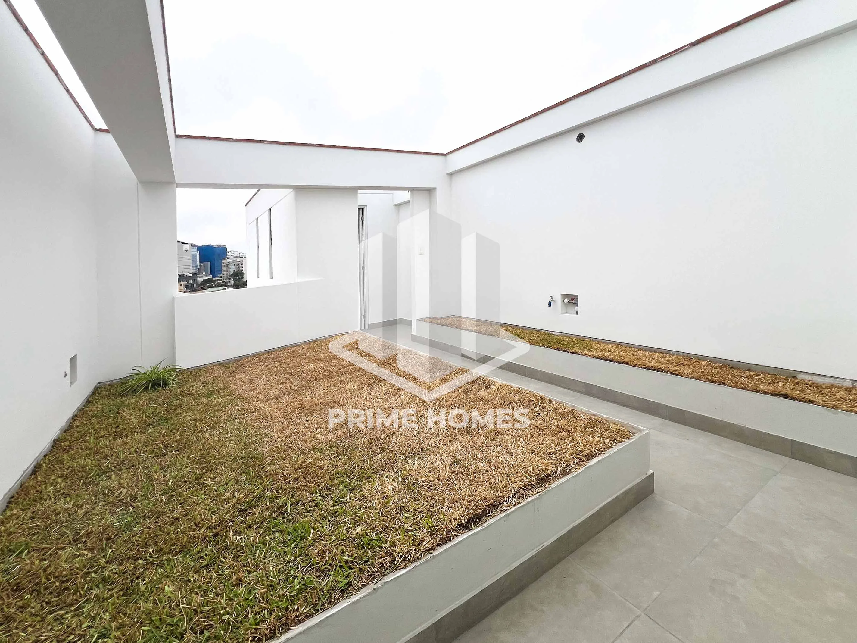 La azotea permite habilitar un dormitorio adicional luego de la conformidad de obra, desarrollado con estructura ligera, techo con protección térmica y contra lluvia, piso laminado y espacios preparados para closets o mobiliario a medida.